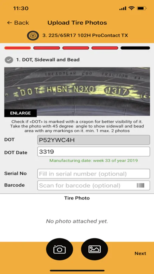 Capture your complaint tire photos and simply attach them to upload or follow the guide that is prepared for you to take the most required photos and submit them in the most suitable way.