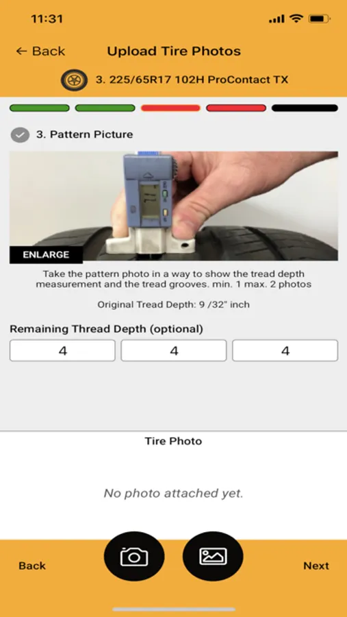 Identify photo upload status of each complaint tire