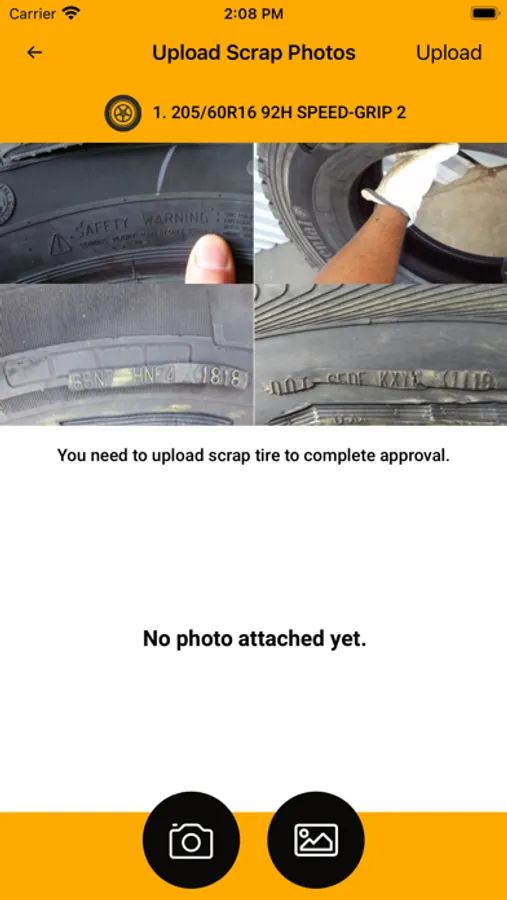 Your app will simply show you the number of complaint tire photos you’ve attached and therefore to be uploaded and then a confirmation of success in upload process.