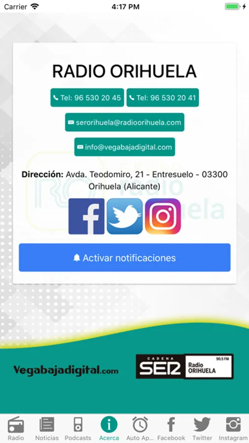 Radio Orihuela Cadena SER, junto a Vegabajadigital.com, forman el Grupo de Comunicación de referencia en el sur de la provincia de Alicante con 40 años de experiencia.