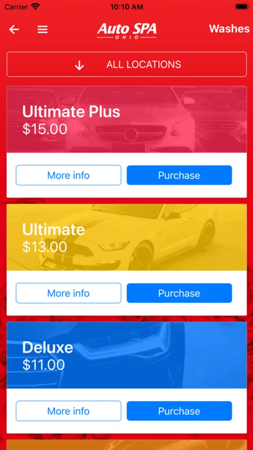 • Purchase car washes directly through the app