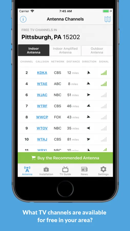 The NoCable app assists you with setting up your over-the-air (OTA) TV antenna and then helps you get the most out of your free broadcast television. NoCable walks you through the purchase, installation and troubleshooting of an over-the-air TV antenna recommended specifically to your home's location!