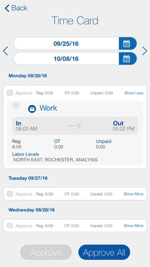 The BBSI Kiosk app enables Stratustime® clients to turn an iPad® into a working time clock for their employees to record their time and perform other self-service options. Employees can quickly punch in/out, punch for lunches and breaks, and perform job transfers, even when the device is in a location without an established cellular or Wi-Fi signal. Employers can grant employees access to enter pay adjustments, request time off, view their schedule, and view/approve their time card. Clients can enable an optional image-capture setting during the time of a punch.