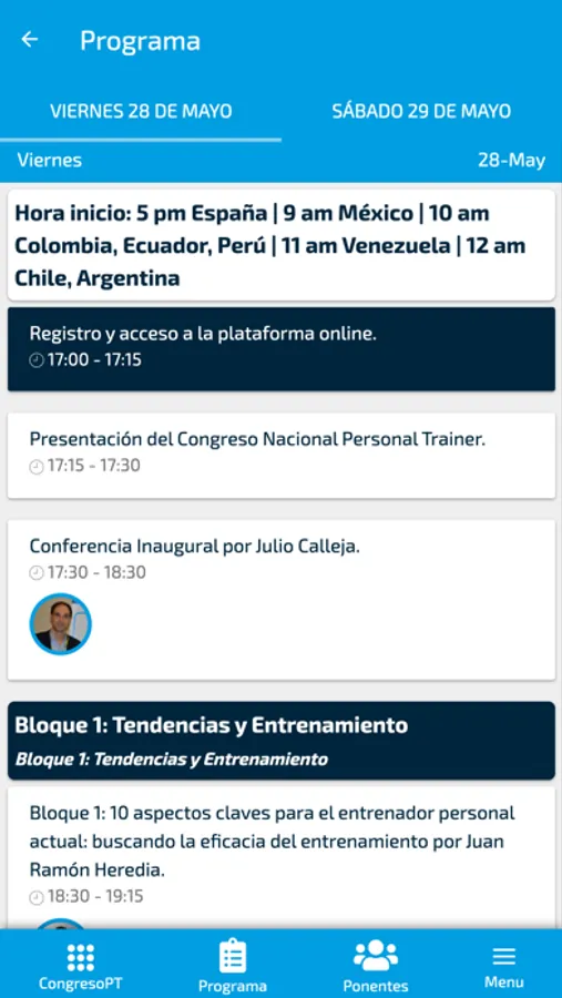 El programa incluye ponencias sobre temáticas de interés para quien ejerce o pretende ejercer en el campo del entrenamiento personalizado.