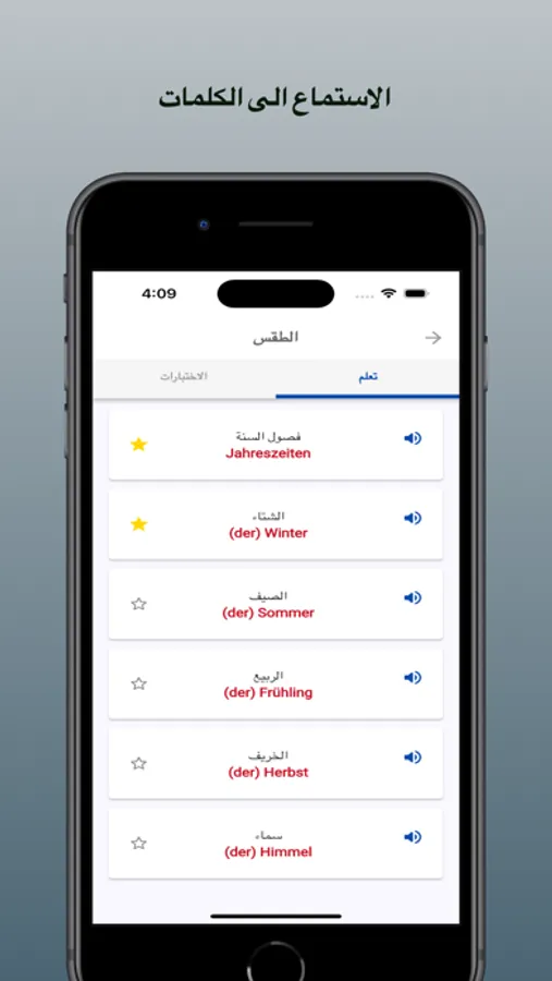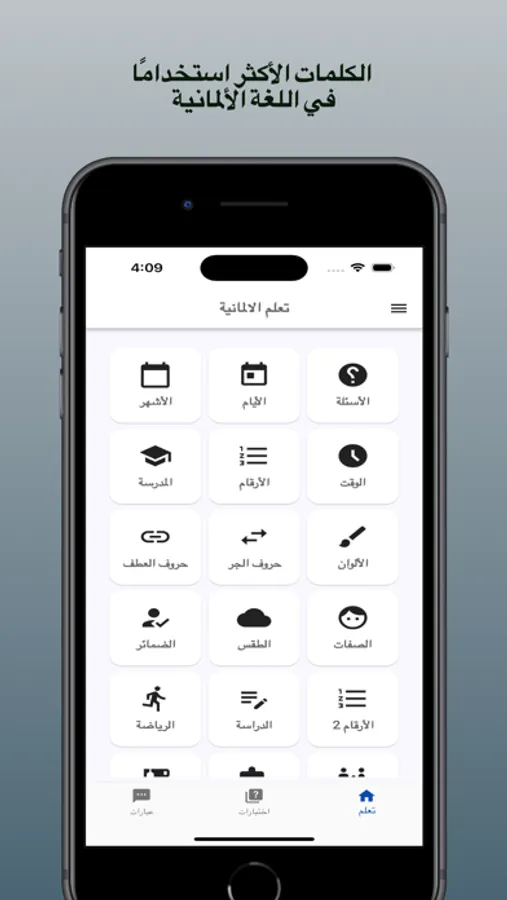 تطبيق تعلم اللغة الالمانية مقسم الى