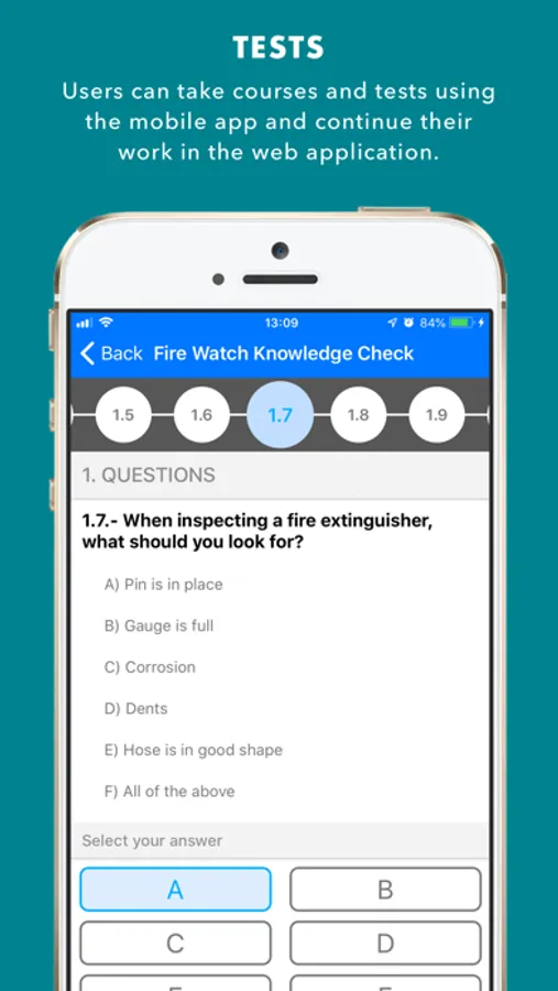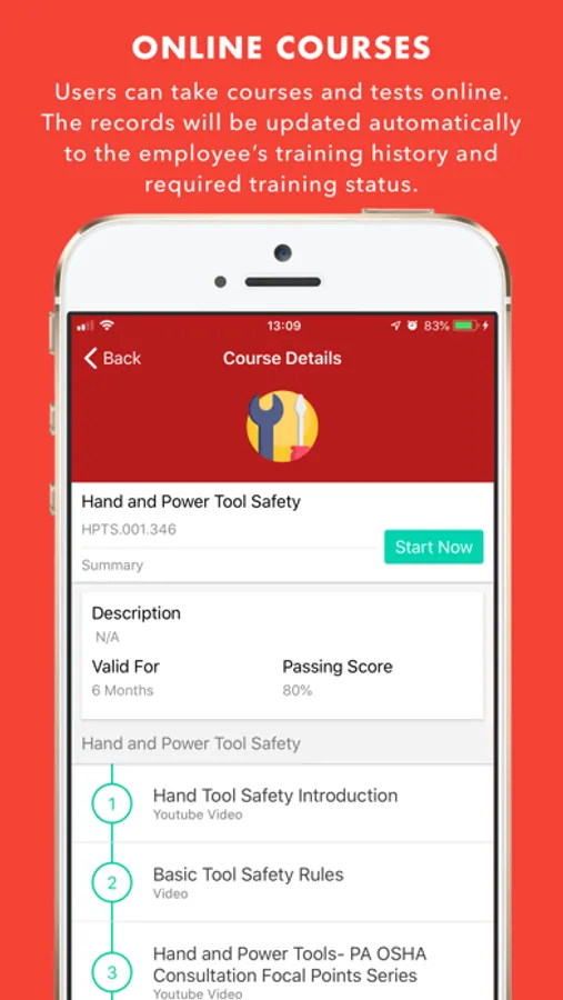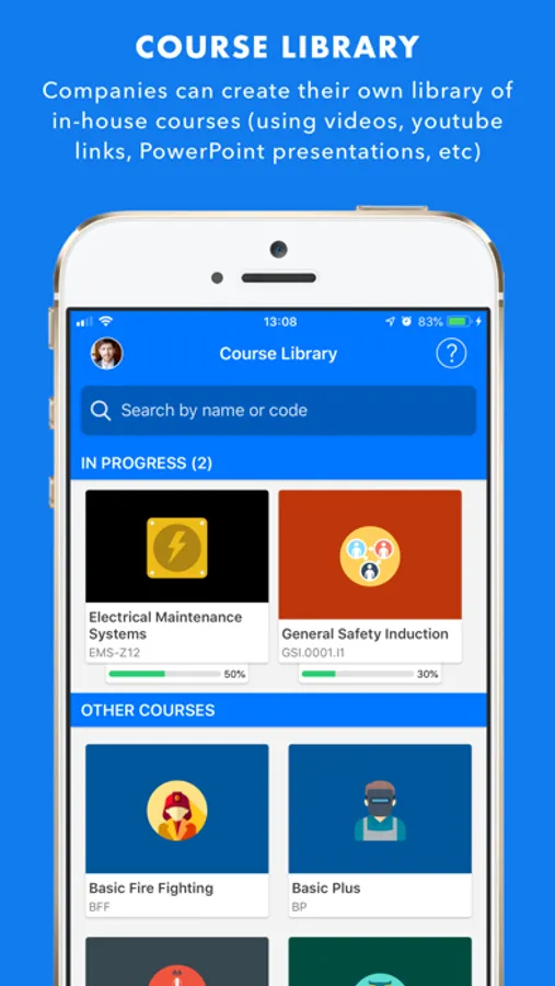 • The mobile classroom application for employees to take courses online, with or without tests and for them to be able to check their required training and history. They can also continue these courses later in the web application.