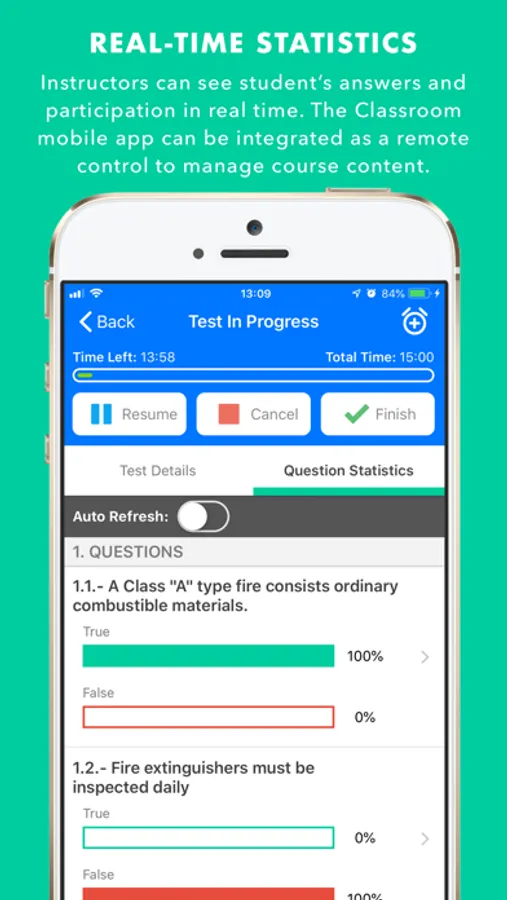 • The ability for students to use their own mobile phones via Wi-Fi to answer questions. The instructor can see the individual student’s answer in real time, which facilitates confirmation of knowledge transfer.