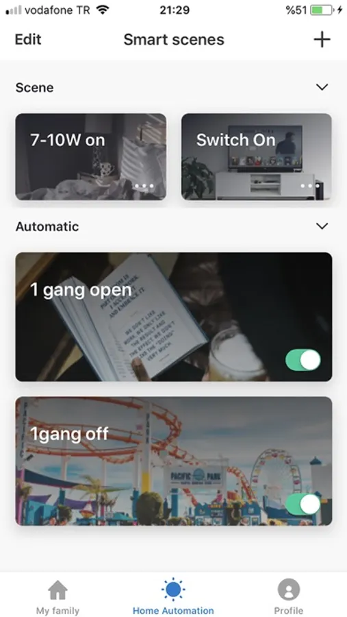 • By creating a scenario, you enable smart devices to work together. The devices automatically start or stop working according to temperature, location and time.