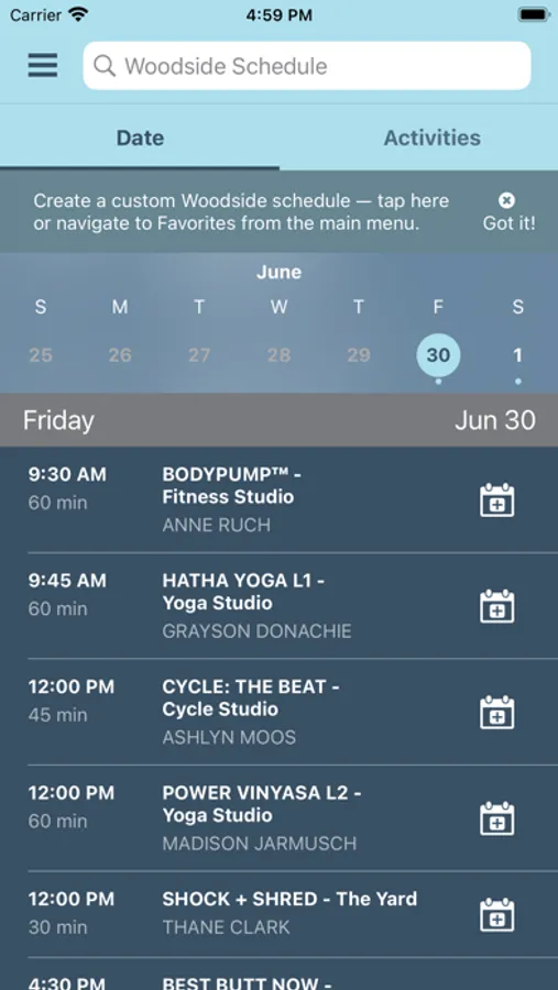• View group fitness class schedules, compile favorites, register for paid classes and get calendar reminders for saved and booked classes.