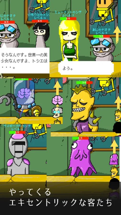 やってくるお客さんは人間だったり脳みそだったりサイボーグだったり・・・極めて個性豊かなキャラクターがたくさん登場します。