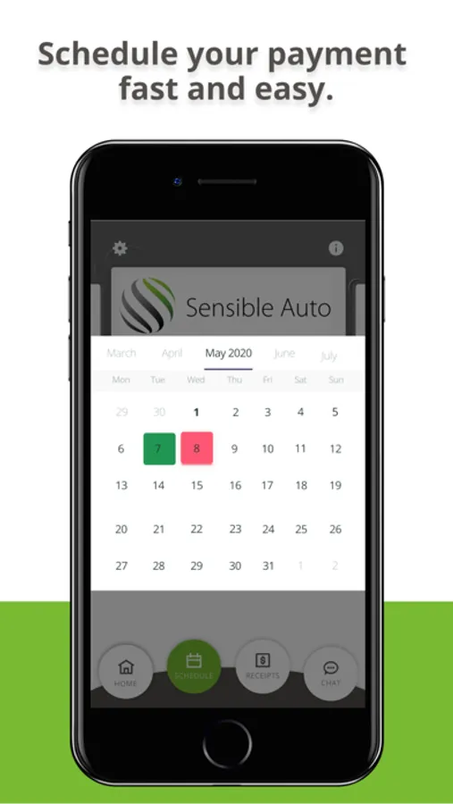 Make and schedule your Sensible Auto payment in real-time. The Sensible Auto App is the easiest way to make your payment, see your payment history, and chat with your provider. It's fast and easy.