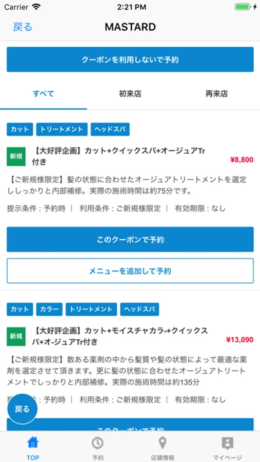 お得なクーポンが配信されます。ネット予約時にクーポン利用での予約も可能なので来店時もスムーズに施術頂けます。