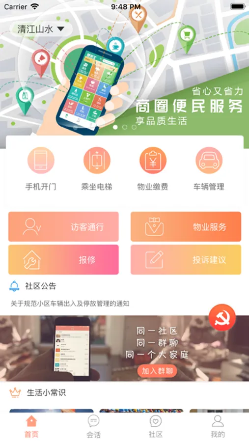 小区业主只需简单的操作,即可拥有贴身及时的物业管家基础服务,物业保修;在家即可轻松享受周边精彩生活;上慧美丰玩转小区生活圈!尽情感受智慧社区的魅力!