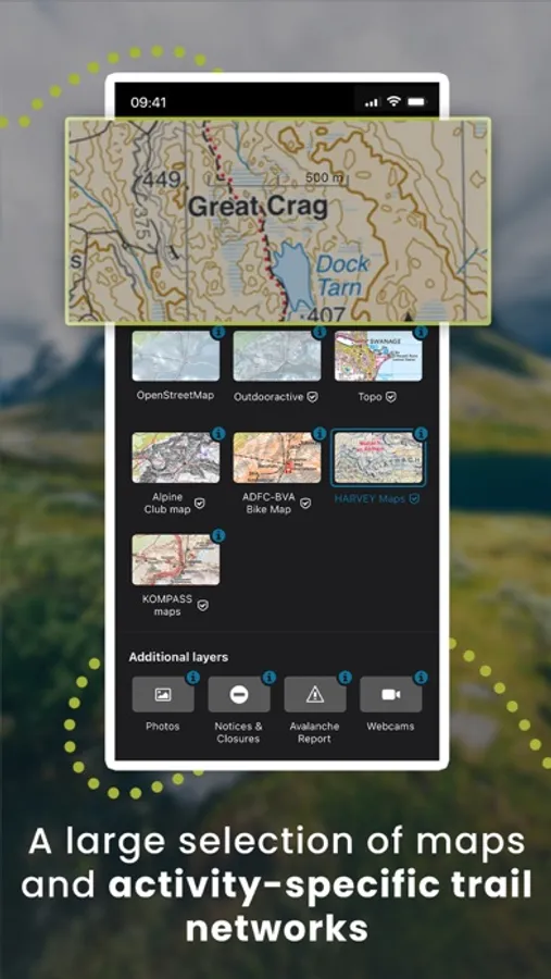 Browse the deepest collection of different map types to track or plan your adventures with confidence: Simply switch between different layers to get a clearer picture of the terrain you're planning to visit, and get the most reliable understanding of conditions on the ground. Outdooractive's map catalog currently includes: