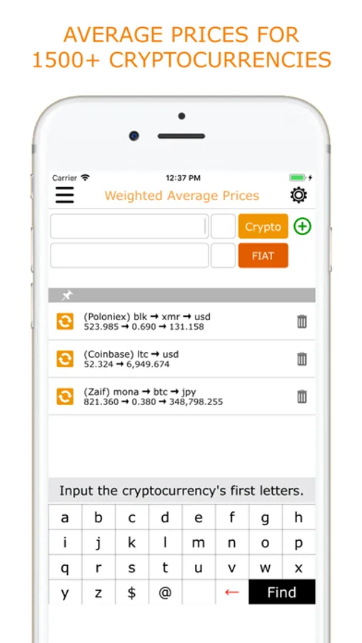 AVERAGE PRICES FOR 1500+ CRYPTOCURRENCIES