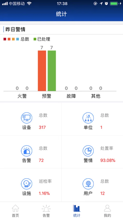 本应用有检查该场地设备是否完好,人员是否在岗,加强学校、单位等场所的管理人员更加有效的快速的得知预警情况,从而减少事故。