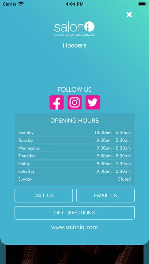 SalonIQ Booking App is a comprehensive solution that enables customers to book and manage their salon appointments. Users can register, log in, select a salon, services, team members and the app provides options reflecting user's preferences. Depending on salon, the user's appointment may be booked in or the user may be prompted for deposits or full payment. The app allows users to see their future appointments and manage them. Options to purchase and manage gift cards (including printing or emailing them to another person) are also provided. Salon contact details are included as well as a map to enable the user easier navigation.