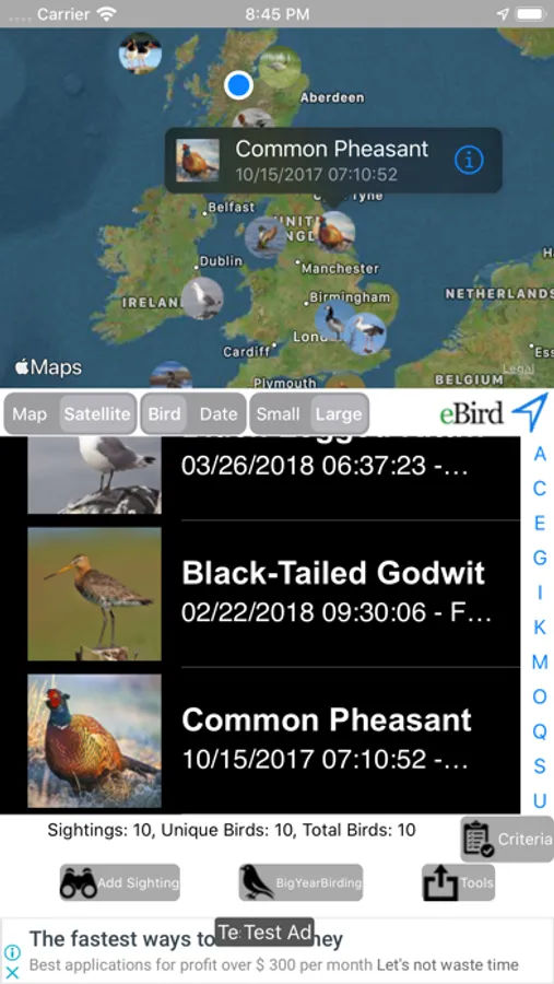 Whether you are doing a Big Year, local Christmas Bird Count or simply keeping track of the birds in your own backyard, Big Year Birding - Great Britain makes recording your sightings easy, fun and fast! You can even create eBird upload files with the simple click of a button!