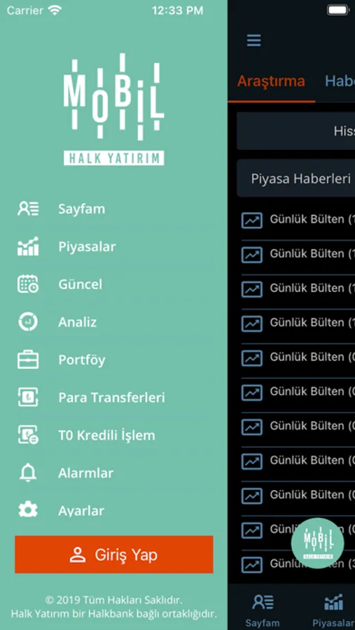 Halk Yatırım’ın müşterilerine ücretsiz olarak sunduğu bu uygulama ile internet erişiminizin olduğu her yerden Halk Yatırım şifrenizle giriş yaparak portföyünüzü görüntüleyebilir, çeşitli haber ajansları tarafından derlenen haberlere ulaşabilir ve piyasalardaki son dakika gelişmelerini takip edebilirsiniz. Ayrıca takip ettiğiniz finansal enstrümanlara ilişkin grafikleri görüntüleyerek analiz yapabilir, kendinize özel takip listenizi oluşturabilirsiniz. Halk Yatırım Araştırma raporlarına kolaylıkla erişebilirsiniz.