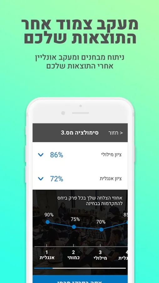 - מערכת מבחנים ובחנים המאפשרת הזנה של כל תרגול או מבחן שתעשו בכיתה לצורך תחקור מעמיק ומעקב שלכם ושל המורה שלכם.
