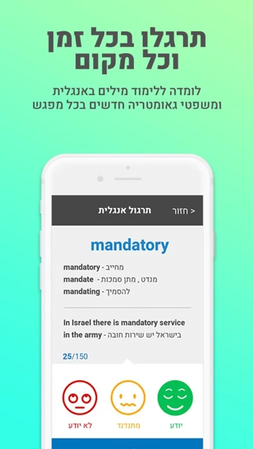 - לומדת אנגלית המכילה 3400 מילים המחולקות ליחידות נוחות ללימוד כדי לעזור לכם להרחיב את אוצר המילים שלכם לקראת הבחינה. בלומדה תוכלו לחוות תרגול ממוקד במילים בהתאם לידע שלכם.
