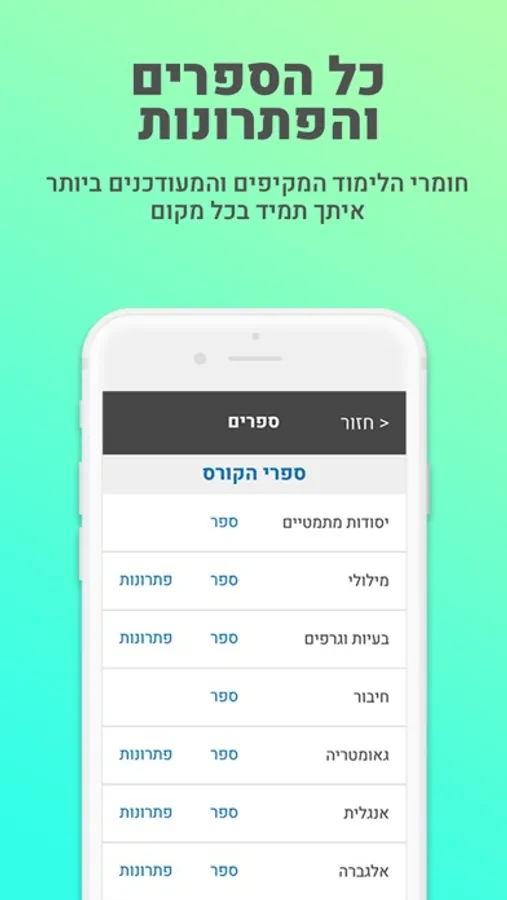 - הספרים אתכם בכל מקום בכל שעה – גישה נוחה לספרים המלאים של טלמור ולפתרונות המפורטים לכל השאלות. אין צורך לסחוב יותר ספרים לחברים כדי ללמוד.