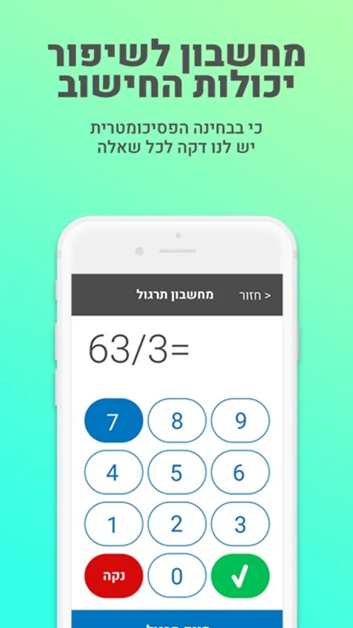 - סטופר פסיכומטרי בו ניתן להיעזר במבחנים שלמים כמו גם בתרגולים.