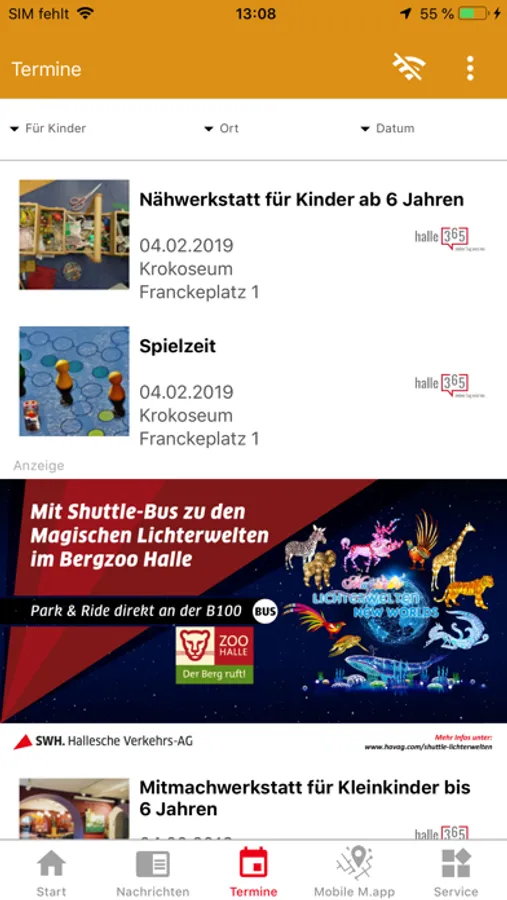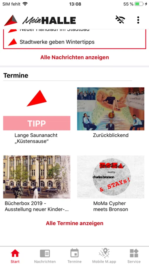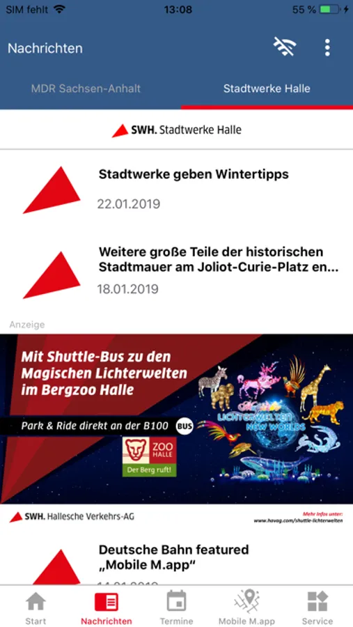 Nutze das kostenfreie WLAN an zahlreichen Hotspots in der Stadt. Weitere Inhalte der App: interaktive Stadtkarte „Mobile M.app“, Link zur Ticketing-App „FAIRTIQ“, lokale Nachrichten und Veranstaltungen, Wohnungsangebote, personalisierbarer Entsorgungskalender und das Wetter in Halle.