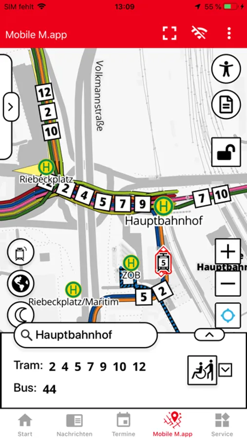 • interaktive Stadtkarte „Mobile M.app“ mit aktuellen Abfahrtszeitenauskunft des ÖPNV