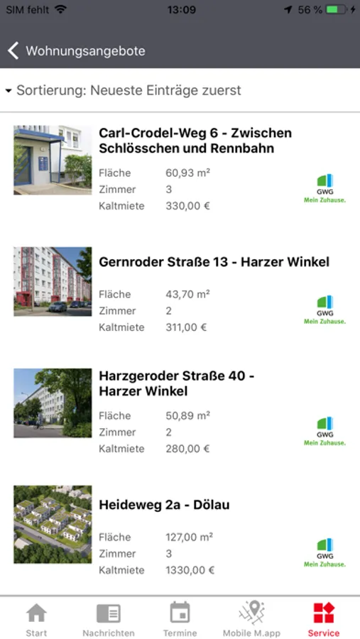 In Zusammenarbeit mit der GWG stellen wir in „Mein HALLE“ aktuelle Wohnungsangebote dar. Das Wohnungsangebot kann in den nächsten Monaten ausgebaut werden. Wir sind bereits in Gesprächen mit unseren Partnern in der Wohnungswirtschaft.