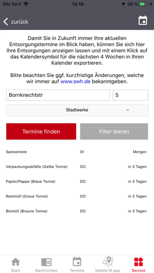 „Mein HALLE” erleichtert den Alltag. Der Entsorgungskalender zeigt, wann die gelbe, blaue, graue und braune Tonne geleert wird. Erstelle deinen persönlichen Entsorgungskalender für die kommenden vier Wochen und übertrage diese Termine direkt in den Smartphonekalender!