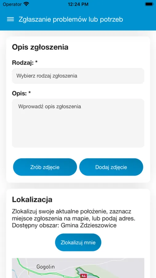 Aplikacja w bardzo prosty sposób pozwala na zgłaszanie różnych problemów czy usterek.