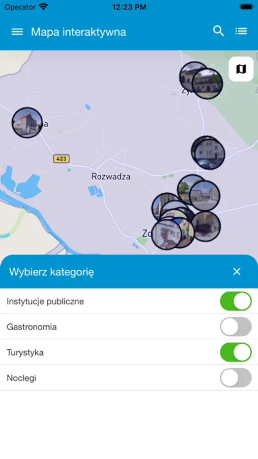 Obiekty na interaktywnej mapie są grupowane w kategoriach i podkategoriach, posiada dane opisowe i kontaktowe oraz multimedialne. Dodatkową funkcją jest uruchomienie funkcji nawigacji prowadzącej do wybranego obiektu.