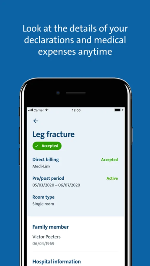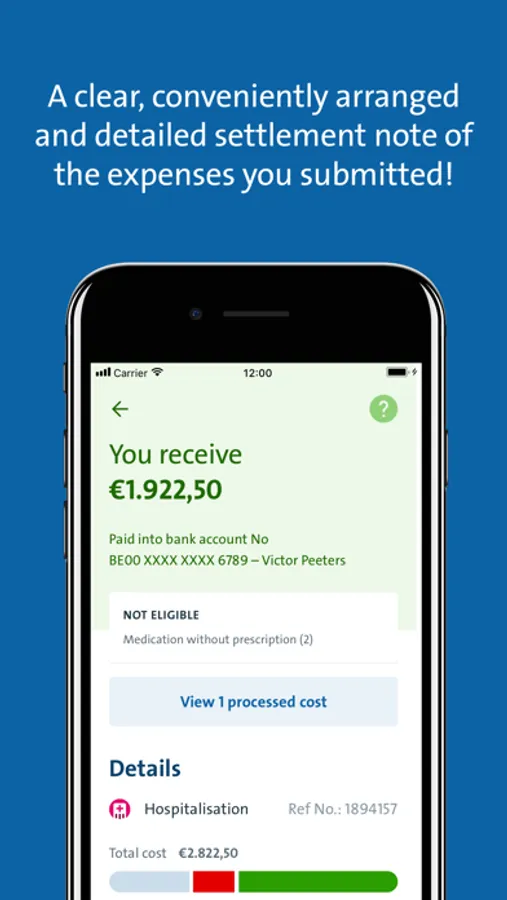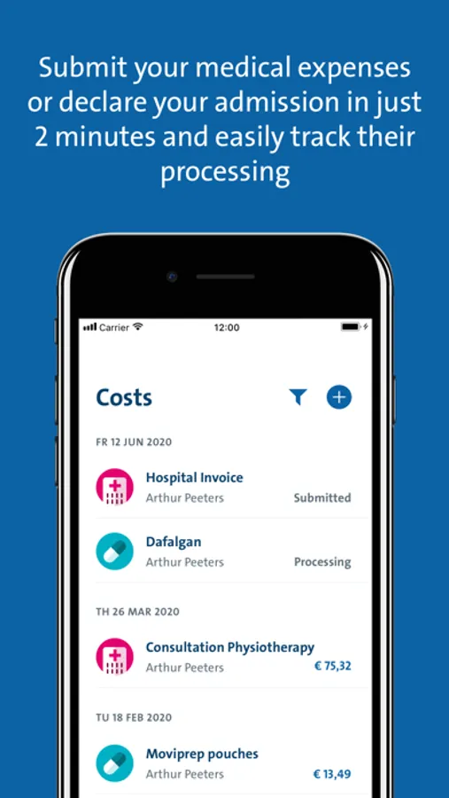2. Easy and quick: with the app you submit your medical expenses or declare a new admission in just 2 minutes; have your barcode scanned by your pharmacist and track the processing in your app, anytime, anywhere.