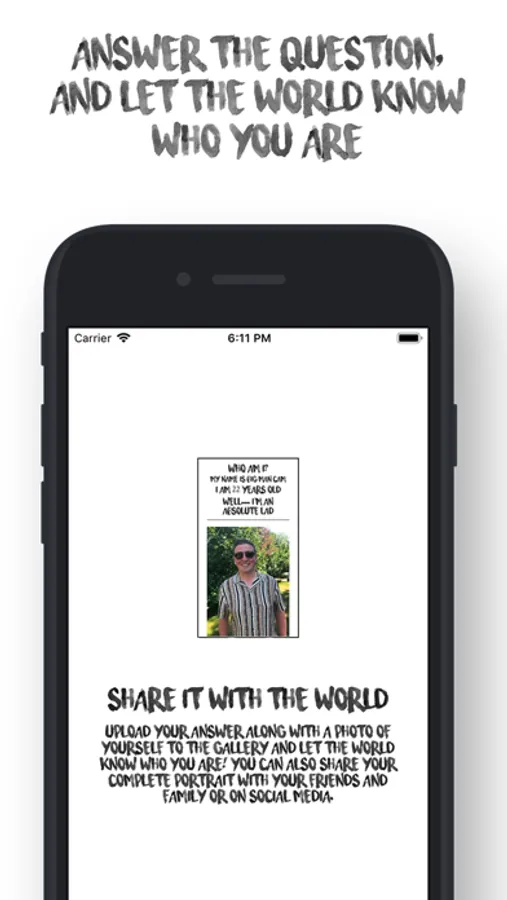 Are you curious about people & humanity? Who Am I?' Is an interactive social experiment & gallery. How would you answer the question “Who Am I” and what does it mean to you? Submit your answer and let the whole world know. Will you inspire & enlighten or will you provoke? Explore the gallery to find out who other people are from around the world. What will you find out?