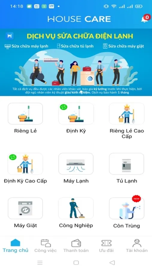 HouseCare là ứng dụng kết nối Khách hàng với đội ngũ Cộng tác viên chuyên nghiệp một cách nhanh chóng. Chúng tôi cung cấp các dịch vụ: Giúp việc nhà, sửa chữa điện lạnh, Vệ sinh công nghiệp, Kiểm soát côn trùng. Tất cả Cộng tác viên chúng tôi đều có hồ sơ pháp lý đầy đủ, có nhiều kinh nghiệm làm việc và được đào chuyên nghiệp. Hãy để HouseCare chăm sóc cho gia đình bạn.