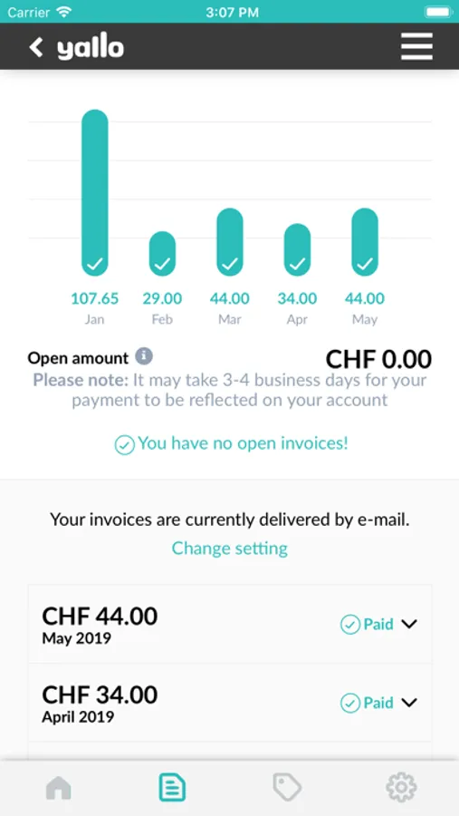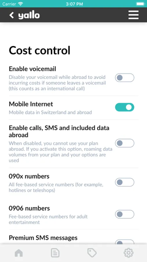 With the yallo app you can see what options you have active, when they will be renewed and how much they cost.