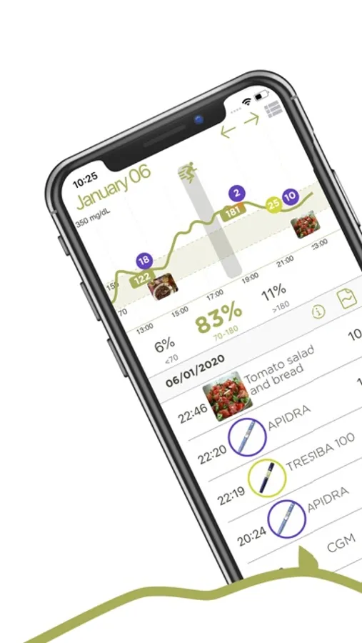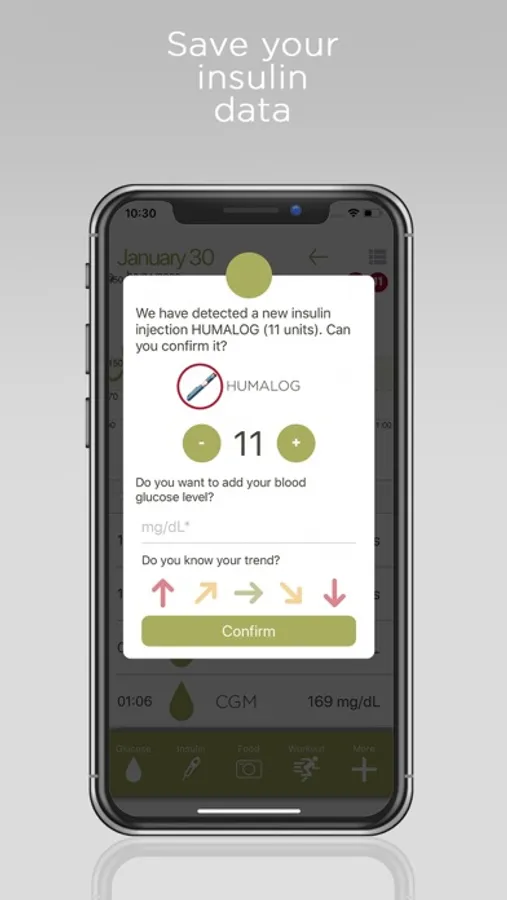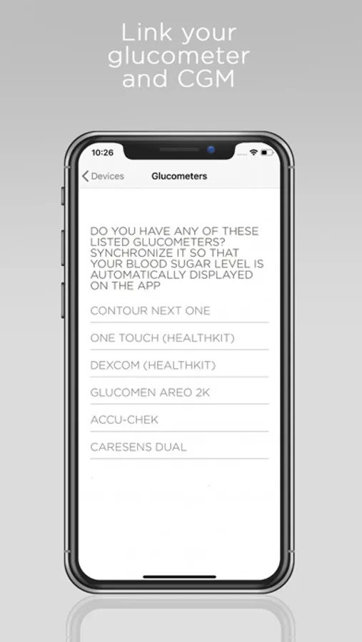 - Link the App with compatible continuous glucometers and glucose monitors.
