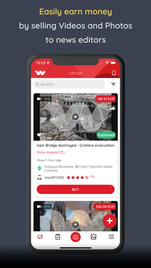 WuvDay is the totally free innovative editorial platform that allows you to become an occasional reporter by uploading and selling original contents. With WuvDay you can document events happening around you and share them with the world. Upload high-quality photos and videos and earn money. Sell using only your phone by responding to editors' requests and posting listings about events, predictable or not, in your area.