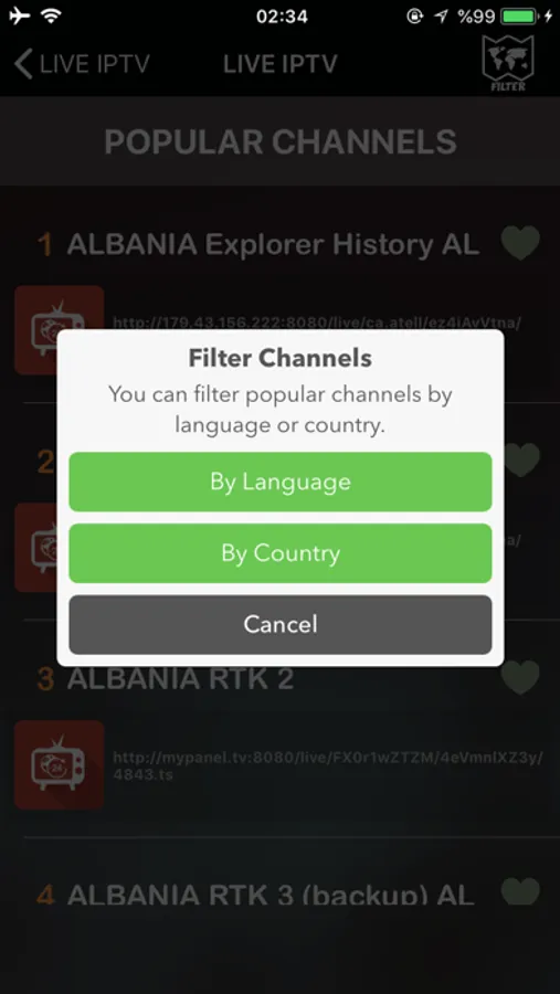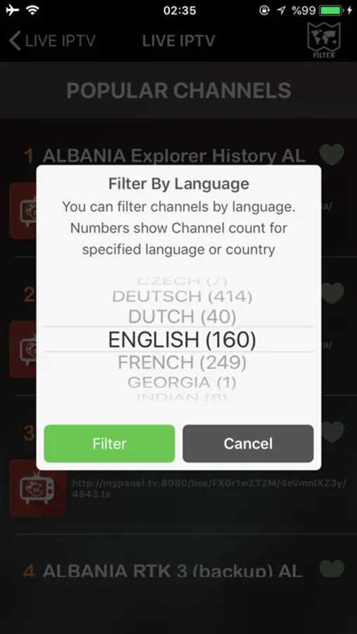 -İf provided playlist link contains language or country attribute you can also sort and filter by country or by language options.