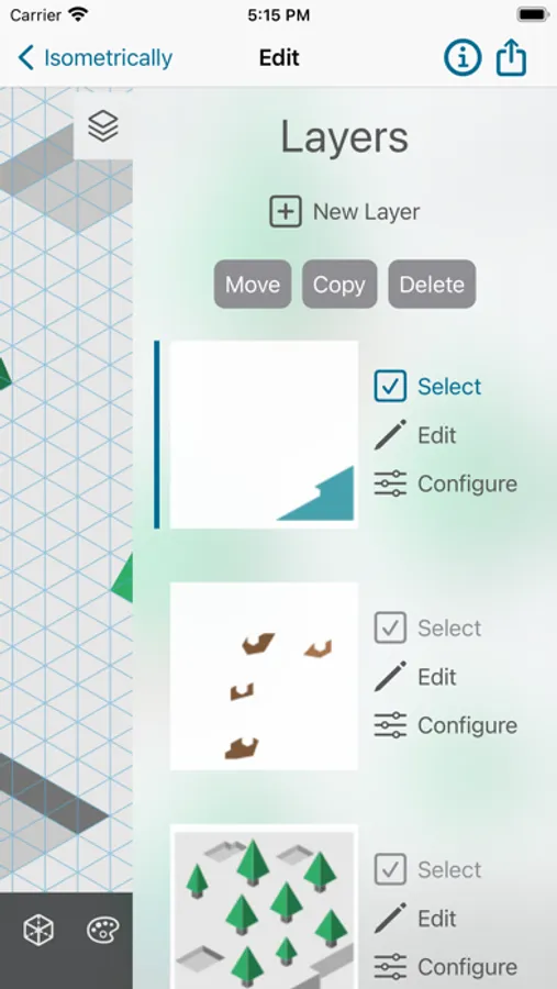 Everything snaps to the triangular grid, keeping things looking correct in the 3D-ish perspective.