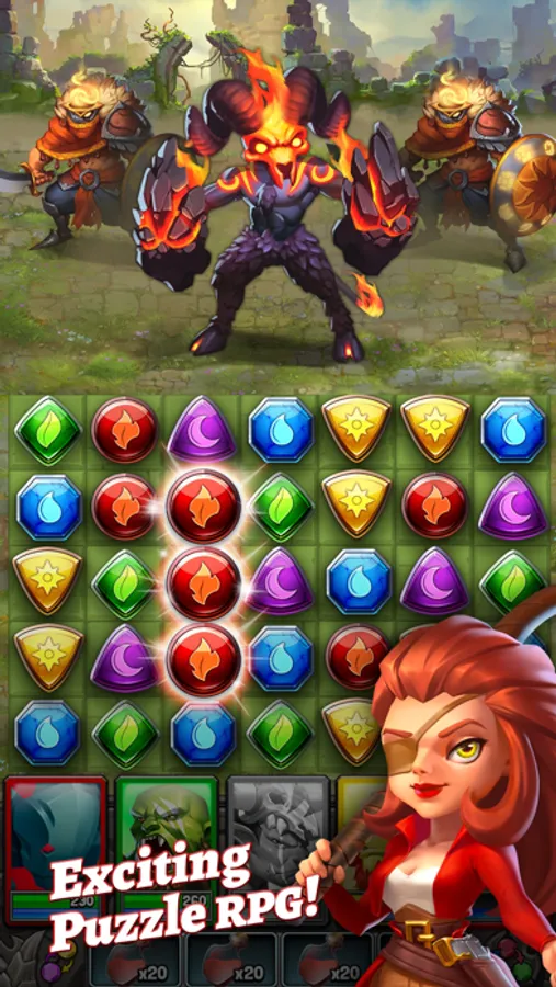 Dragon Strike is an epic new match-3 RPG game, blending the best elements of empire building and match-3 with the added element of PvP arena combat!