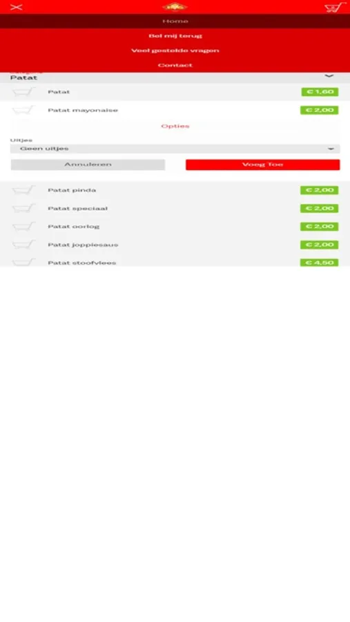Heeft u een vraag en/of opmerking over een bepaald gerecht en wilt u teruggebeld worden door ons? Dit kunt u doen door op de ‘’Bel mij terug’’ knop te drukken en u wordt kosteloos door ons teruggebeld!