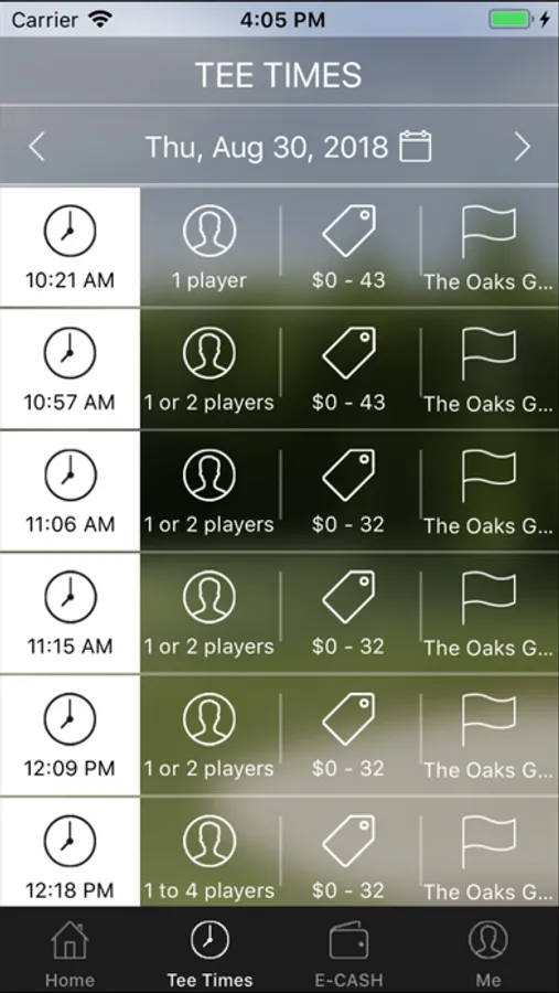 Booking a tee time is as easy as 3-taps and once you've setup your account the app will remember you so its always 3-taps. You can always look up your reservations and cancel reservations if you need to as well. Plus view and redeem your rewards or promotion codes anytime.
