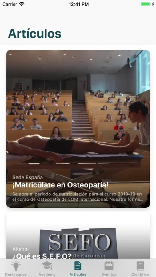 EOM te da acceso a los cursos, novedades y eventos de todas sus sedes en 18 países. Consulta nuestros vídeos, nuestras publicaciones científicas y conoce a los profesores más relevantes en la comunidad osteopática a nivel internacional. Aprende en cualquier momento y en cualquier lugar, sobre los temas que más te interesan de las Ciencias de la Salud.