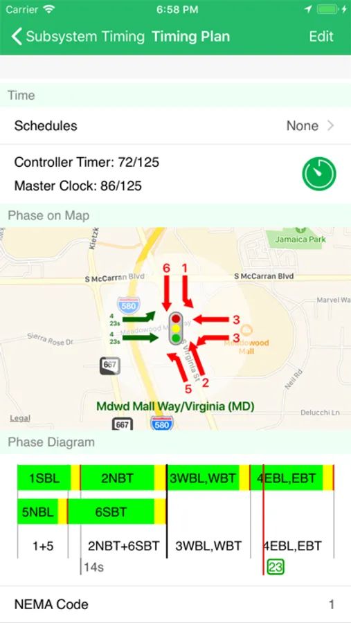 WaySync-M, which is the short for WaySync-Mobile, is a mobile tool for real-time diagnosis and performance evaluation of traffic signal timing plans. It enables users to develop virtual signal controllers on their mobile devices, which run the same timing plans as that running in the field. Together with its advanced features of geo-referencing and dynamic time-space diagram, it allows users to easily diagnose common issues with actuated coordinated signals, such as phase early return, transition, clock drifting, and erroneous offset inputs. It can be used as a supplemental tool for better timing coordinated traffic signals.