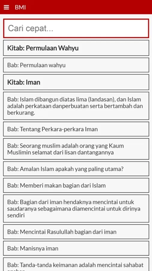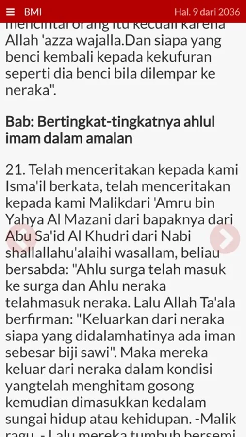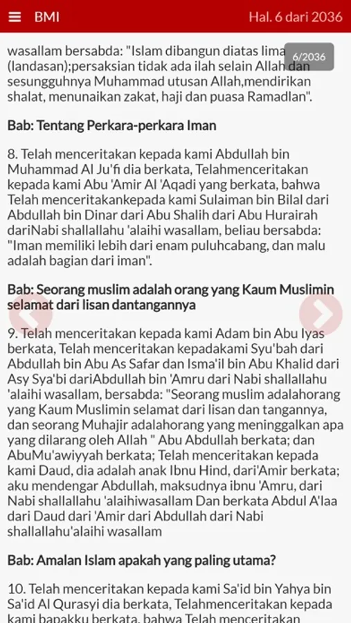 Dalam aplikasi ini Anda bisa membaca terjemahan bahasa Indonesia hadis-hadis Sahih Bukhari dan Muslim.