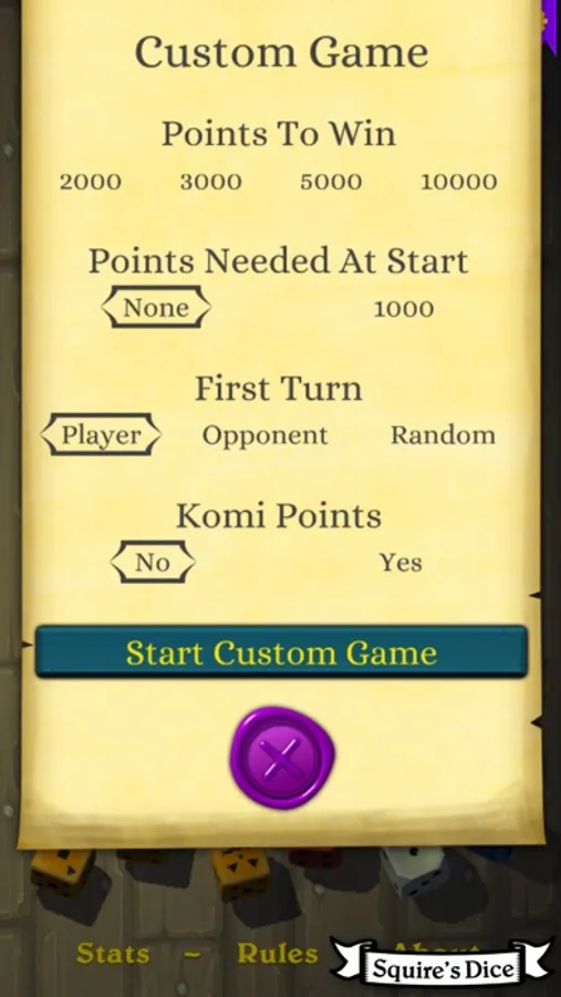 Squire’s Dice is a quick & easy way to play a physics-based game of dice on the go. Influenced by the ancient game of Farkle and the mini-game from "Kingdom Come: Deliverance", players roll to out-strategize the challenging AI.