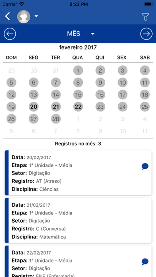 - Consulta aos registros pedagógicos