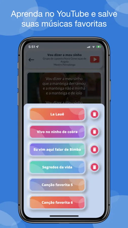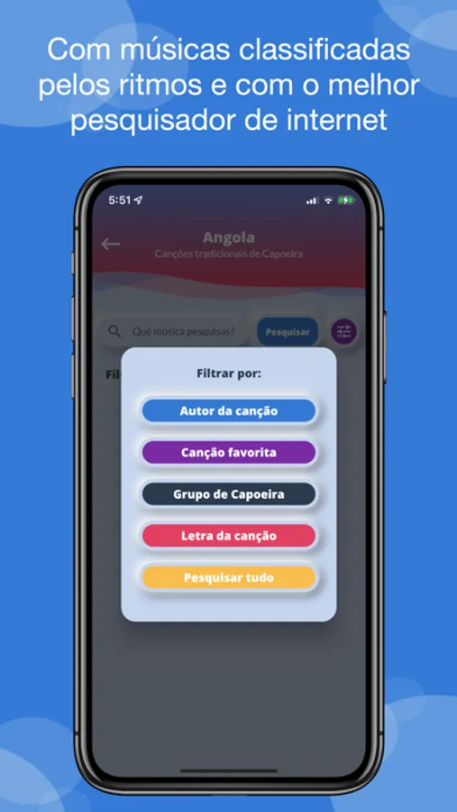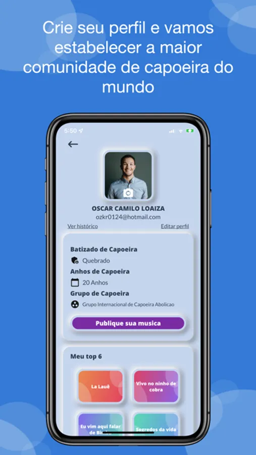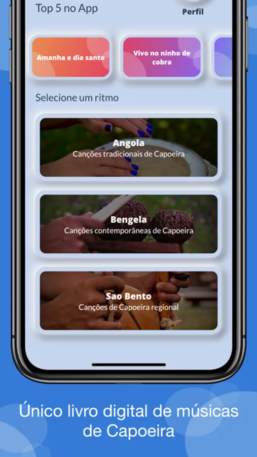 Neste aplicativo, queremos que todos os capoeiristas tenham um lugar para estudar e aprender novas músicas para cantar na roda.
